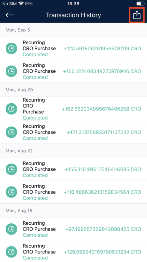 Ottenere lo storico dei pagamenti in criptovalute con cripto.com