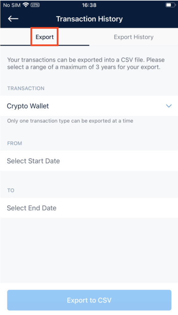 Nel passaggio successivo, sarà la volta di indicare il portafoglio di riferimento, in cui dovrai indicare “cripto wallet”, e l’intervallo temporale, con la data di partenza e la data di fine. Al termine dovrai premere sul tast Esporta in CSV