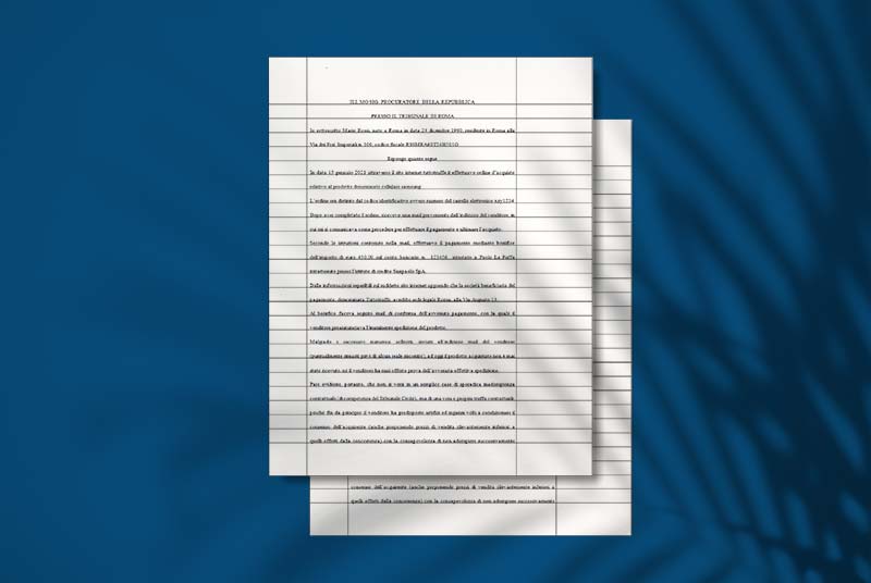 Proprio poiché la denuncia rappresenta un momento di fondamentale importanza per il buon esito delle attività di recupero, evita anche di utilizzare moduli prestampati che trovi su internet. Ne abbiamo pubblicati diversi anche noi, ma possono andar bene per casistiche più semplici e non per denunciare fattispecie complesse come quelle relative alle truffe per trading on line.